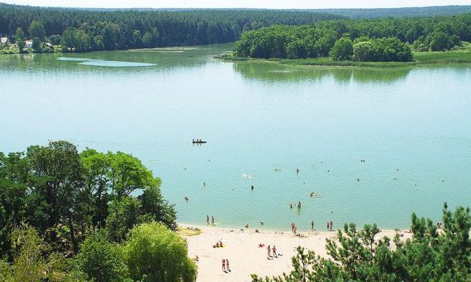 Еще одна красивая локация отдыха находится под Житомиром. В 15 минутах от Житомира в лесу находится три больших голубые озера. Самая большое из них – озеро удлиненной формы. Сюда приезжают искупаться или порыбачить. Здесь водятся сом, карп и карась. Летом здесь отдыхают более тысячи человек. Большинство желают переночевать возле воды. Средняя глубина озера – 43 метра. Вода в озерах – прозрачная и чистая. Без сомнения, тишина и шум воды поможет расслабиться и отдохнуть от городской суеты. Кроме купания можно прогуляться по хвойному лесу или собрать лесных ягод. Здесь очень много пляжей и даже оборудованные зоны отдыха. Недалеко от голубых озер расположен отель, где можно переночевать по довольно невысокой цене. Кроме того, недалеко есть магазины и столовая, где готовят вкусные полесские драники. Голубые озера — это жемчужина полесского региона.