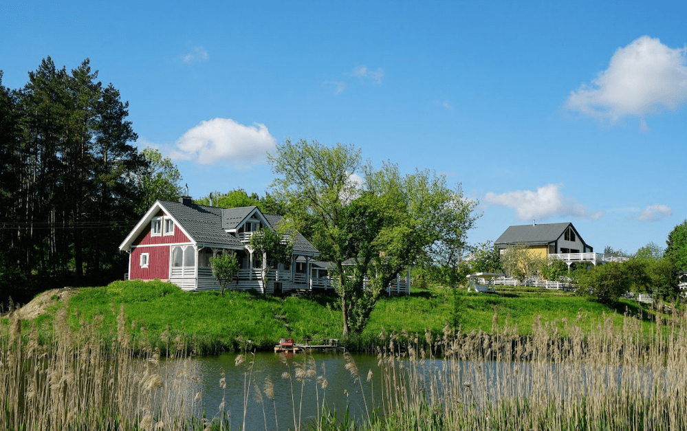 Это идеальное место для тех, кто стремится отдохнуть на природе, как можно дальше от города. Вокруг экокомплекса находится лес и озеро, а способствует полному расслаблению чистый воздух, пение птиц и шелест листьев.