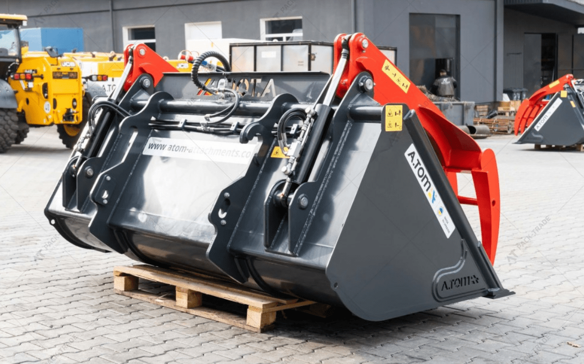 - ще один приклад – це ківш 4 в 1. Такий багатофункціональний ківш часто використовують для завантаження та розвантаження, для захвату та подальшого переміщення великогабаритних вантажів, для проведення планувальних робіт.